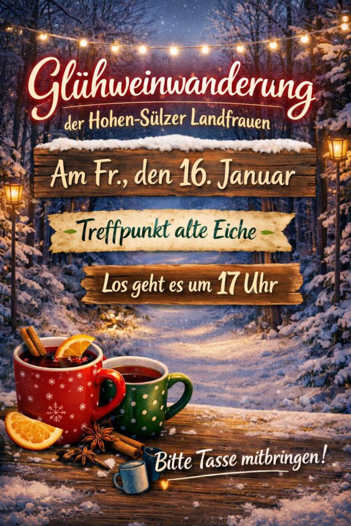 Die Hohen-Sülzer Landfrauen laden Sie herzlich zur 1.Glühwein-Wanderung am 16-01.2026 ein.