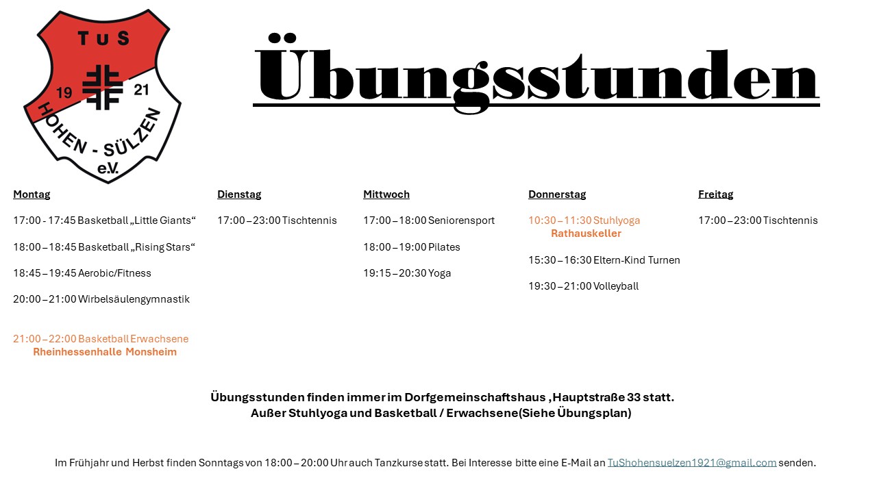 📍Dorfgemeinschaftshaus, Montags von 18:45 – 19:45 Uhr